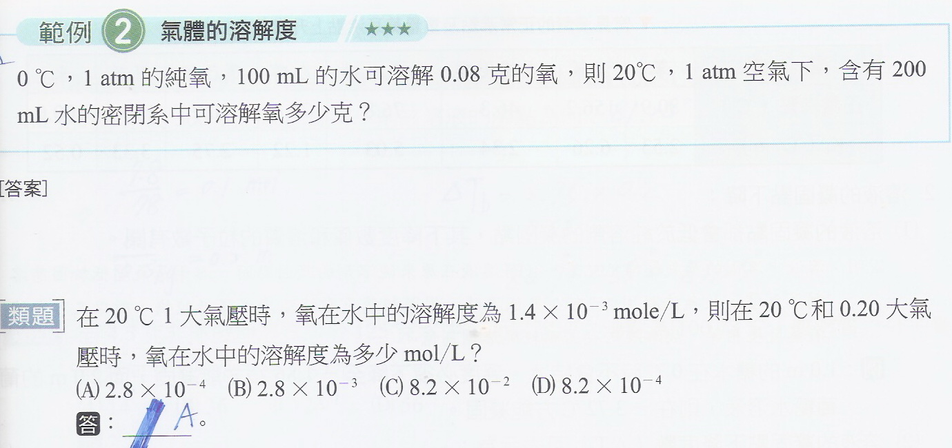 範例和類題。類題題目中的大氣壓是指氧氣的分壓???