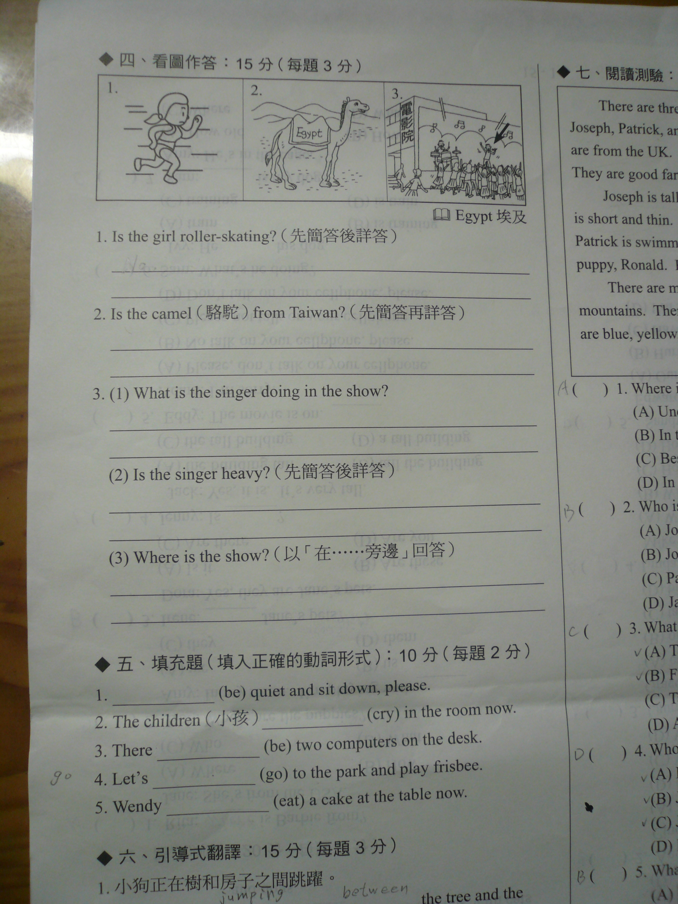 請幫我解答四. 看圖作答1-3題, 五.填充題5題 . 謝謝!