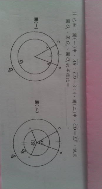 p.146 11. 已知:图(一)中,弧AB:弧CD=3:4,图(二)中,弧CD=弧EF,試求圓O