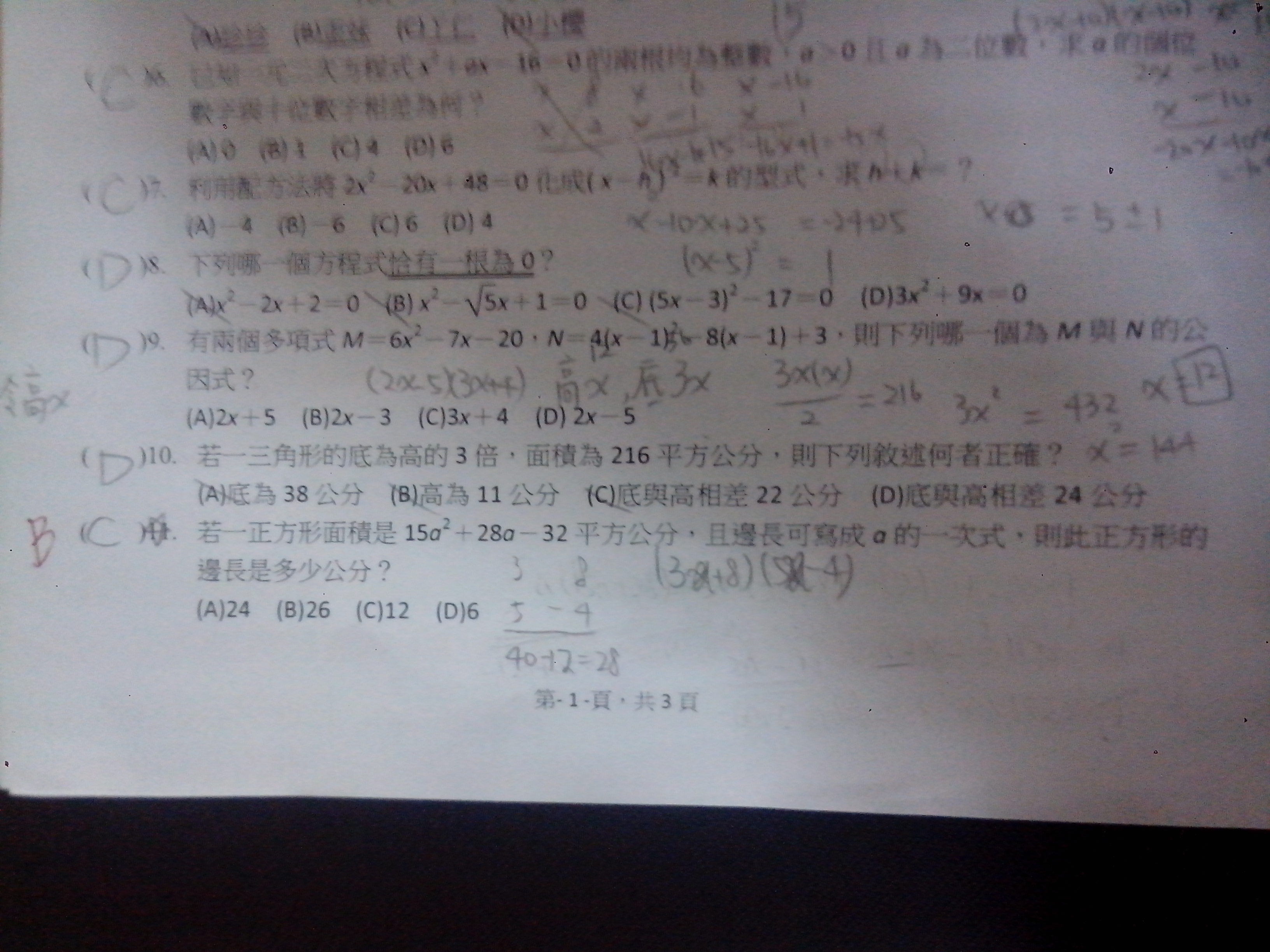 面積因式分解之後是分數...還是我算錯了