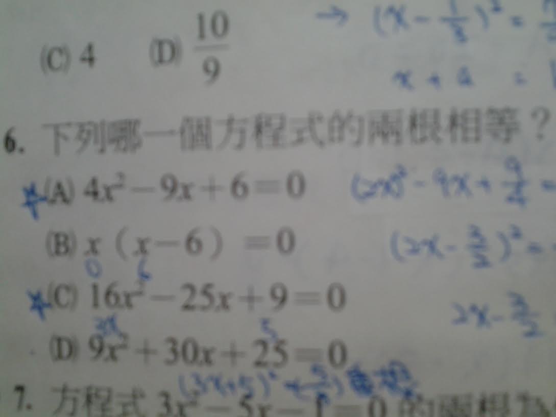 第6題,答案是D,為什麼? 請給我算式,謝謝