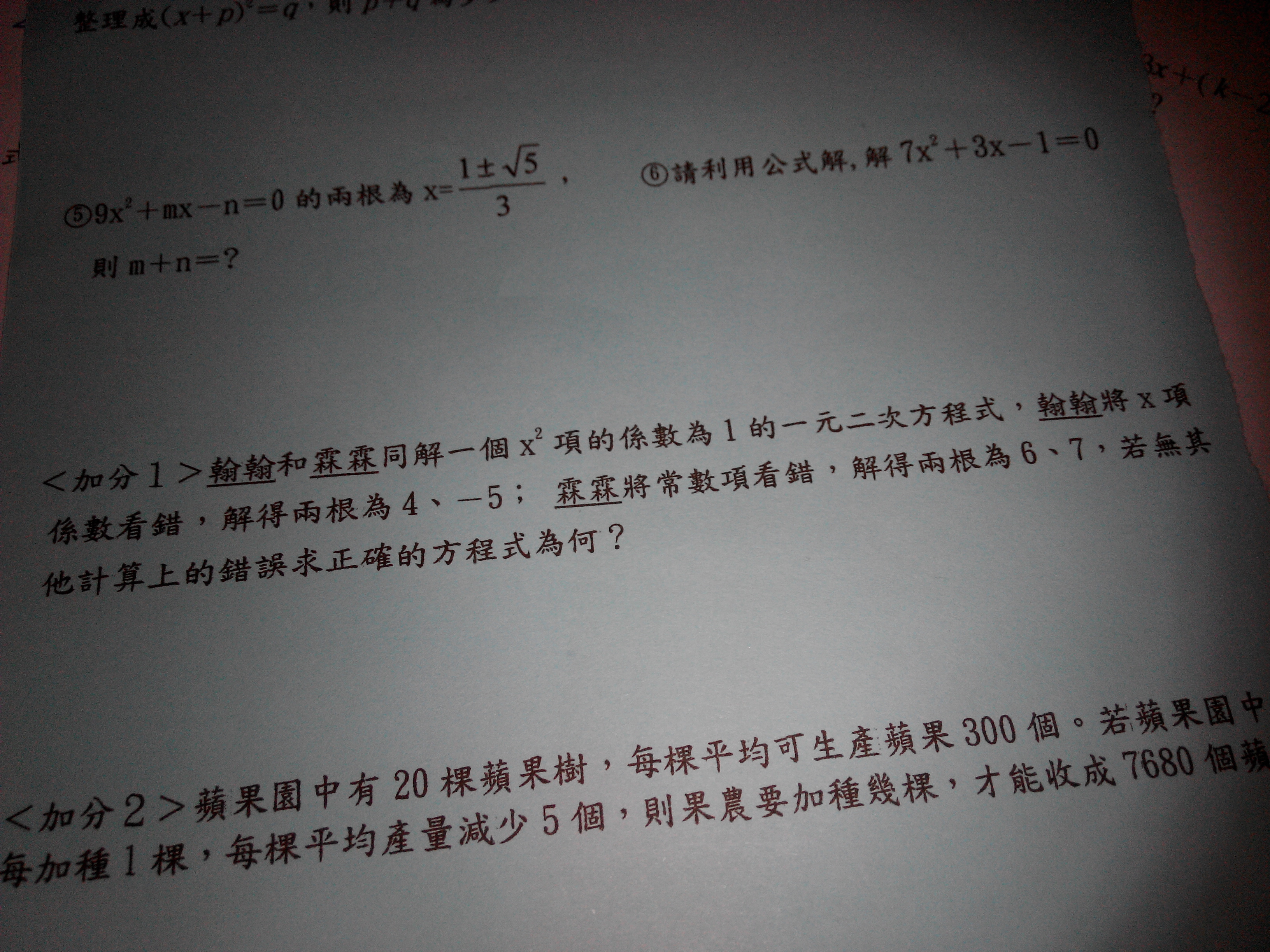 國中 / 數學 一元二次方程式