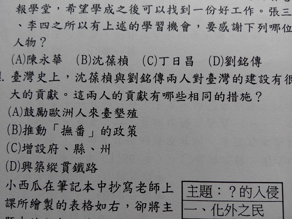 台灣史上的那題:答案是??