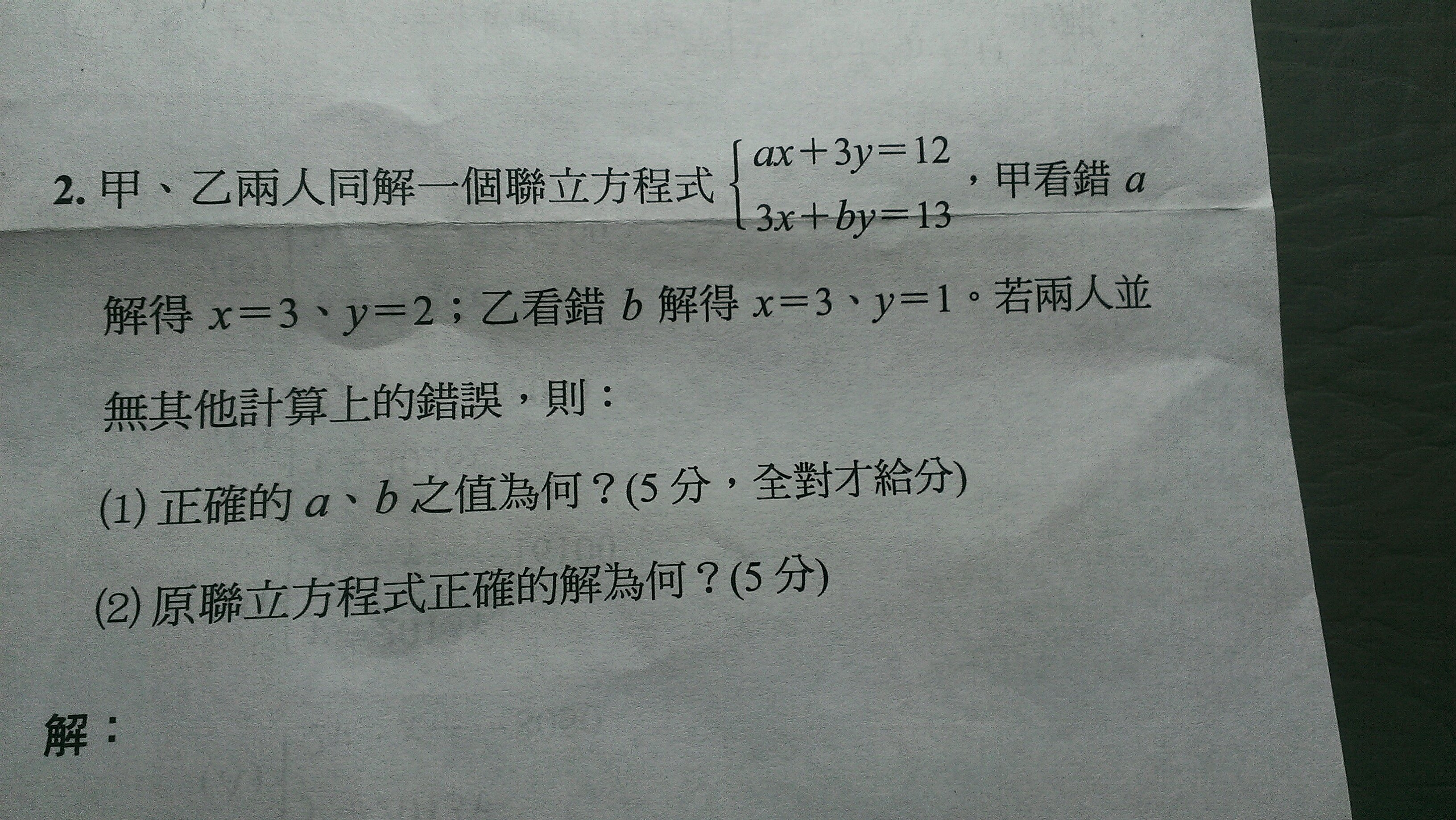 每次發問解題以一題為限,請標示解題題號,若無標示則以畫面第一題為準,若有多題題目發問,請另行發問。