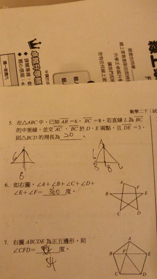 第5題一些中垂線的性質和角平分線的性質不太會