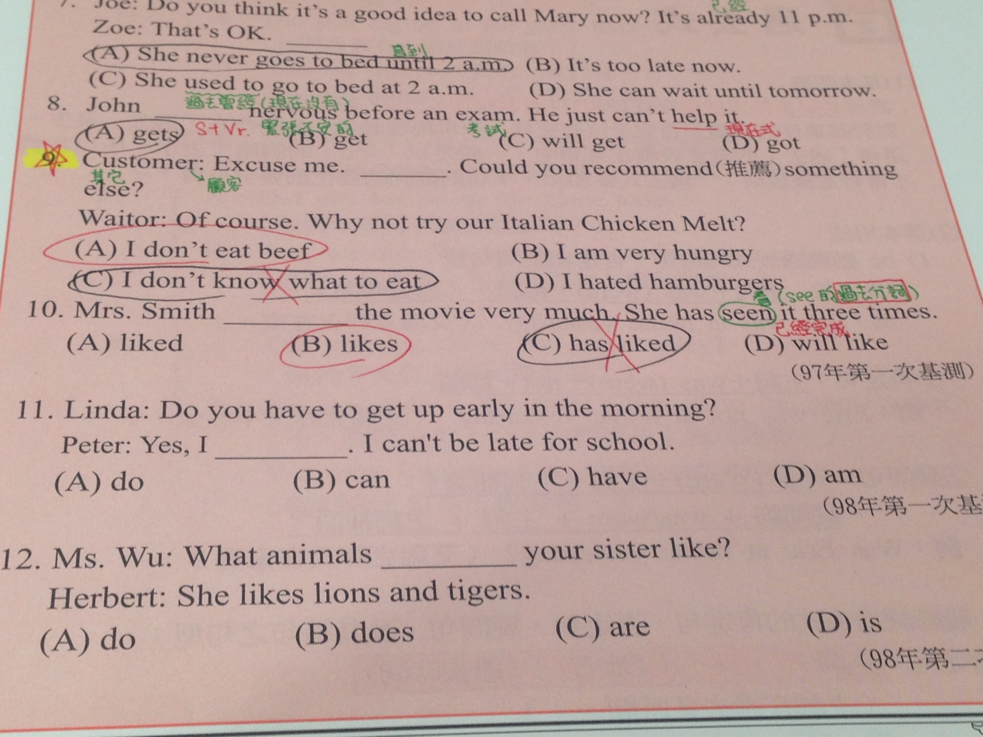 請問第9題為什麼是A,其他選項為什麼不行?