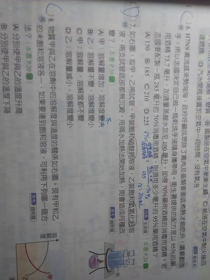 第七題 為什麼選項a溶解度不變?