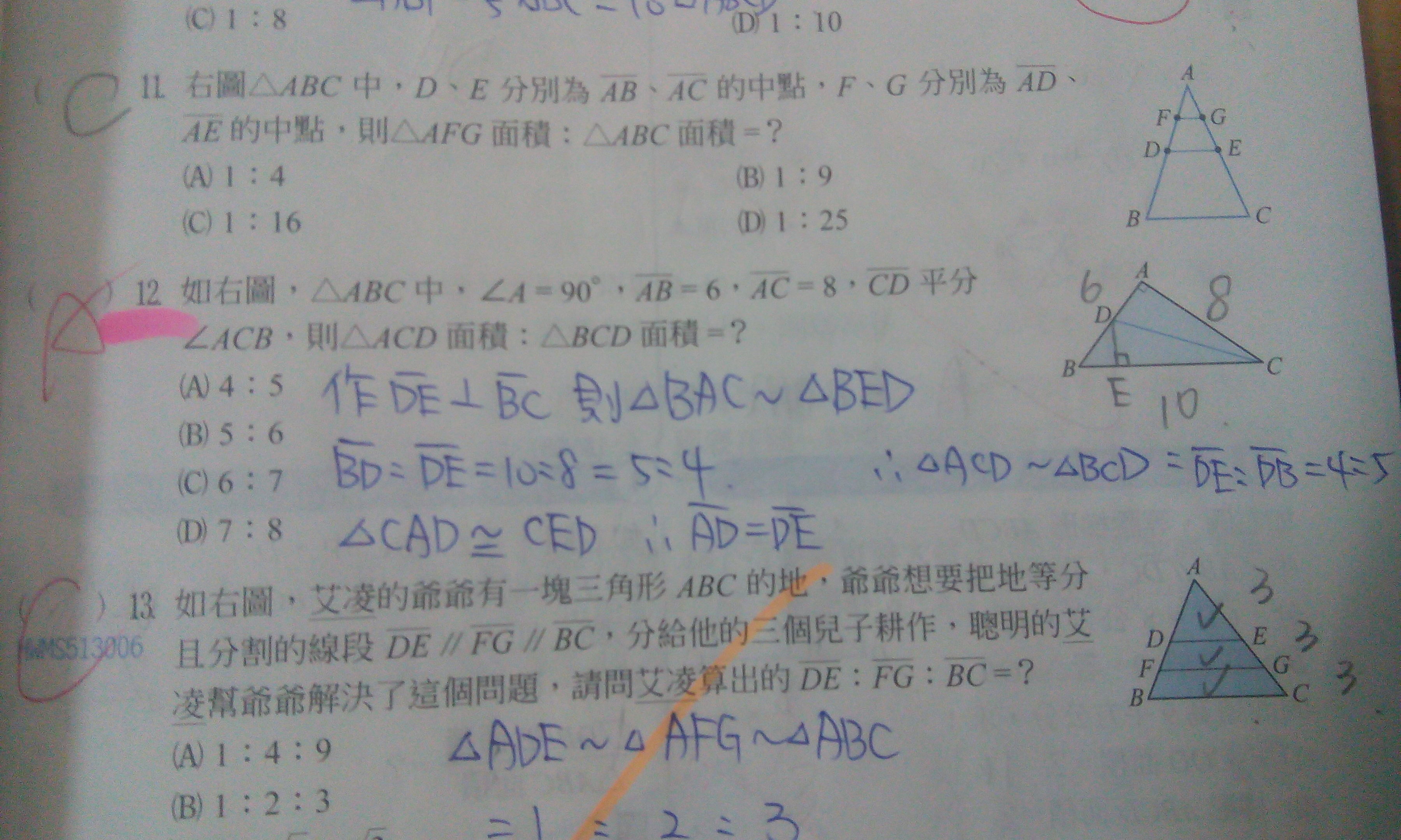 第12題 為什麼三角形CDE+BDE:CAD=5:4