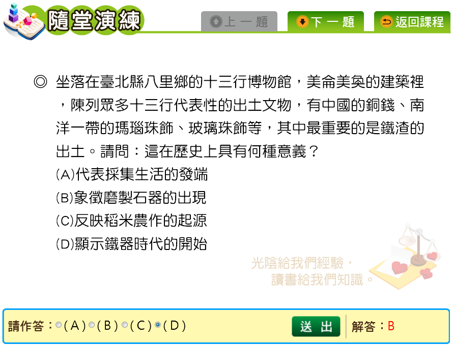 為什麼這題答案不是顯示鐵器時代的開始(D),而是磨製石器的出現(B)?