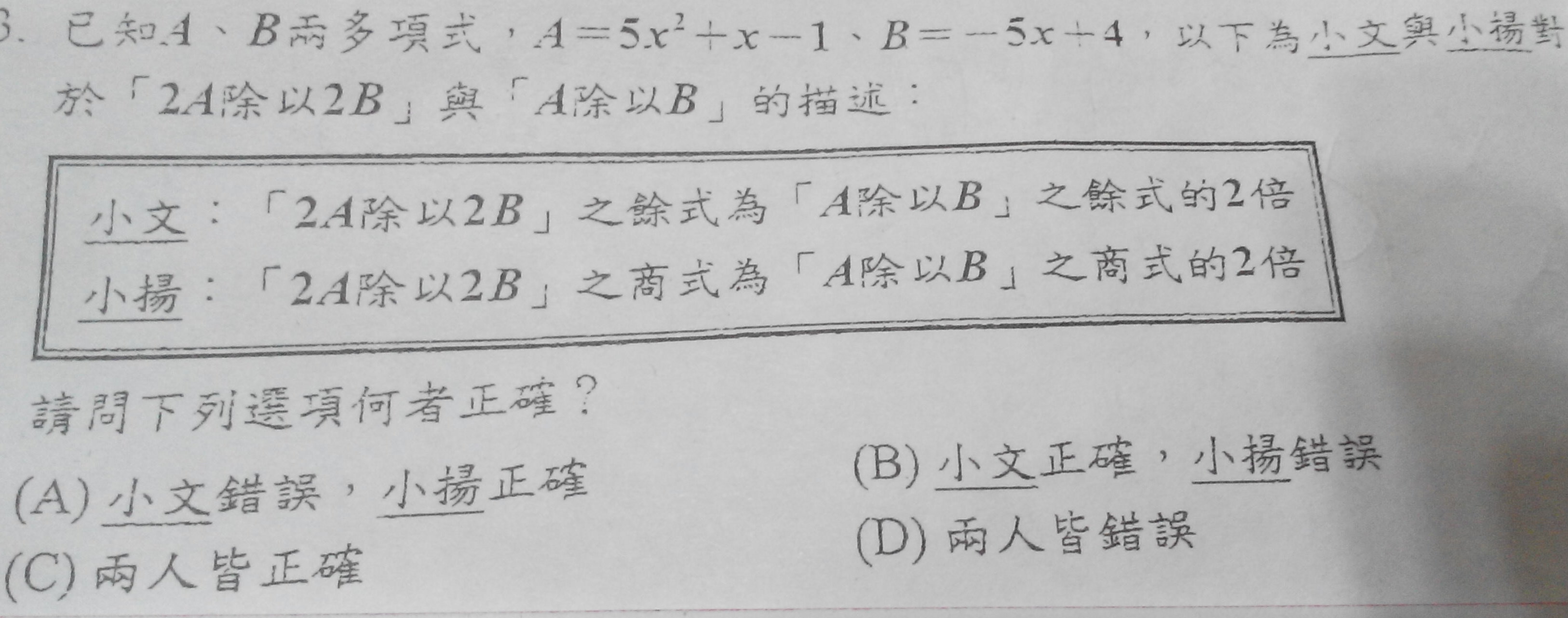 每次發問解題以一題為限,請標示解題題號,若無標示則以畫面第一題為準,若有多題題目發問,請另行發問。