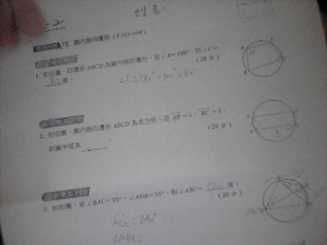 第2題.圓內接四邊形ABCD為長方形.若AB長=1,BC長=3,則圓半徑=?