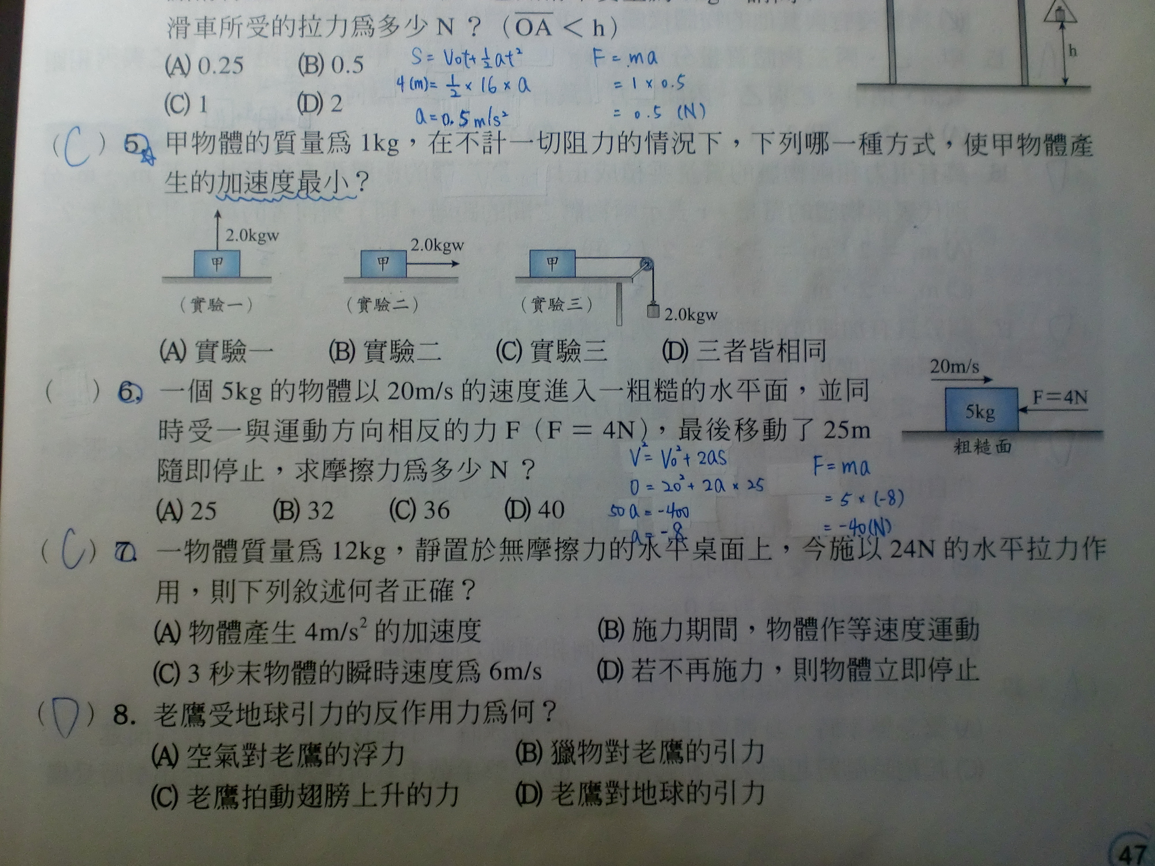 但我最後算出來F=-40(N),可是老師給的解答是C