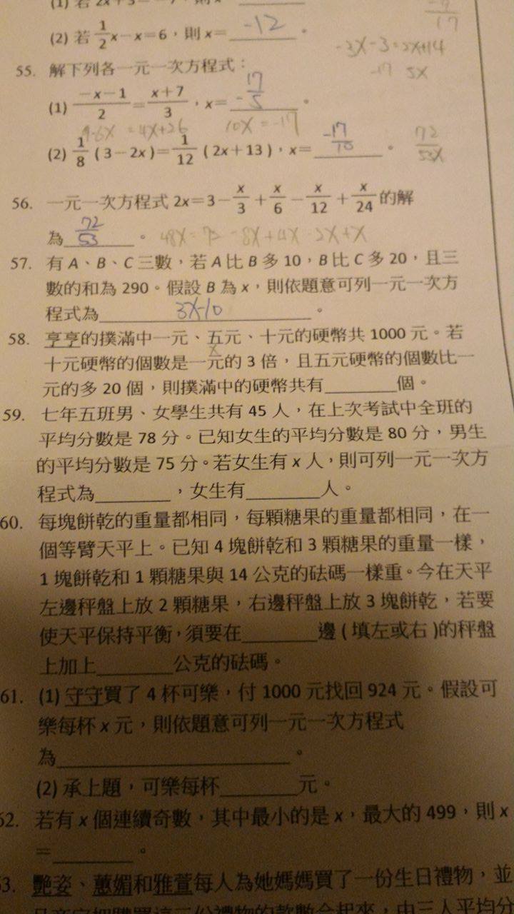 國中 / 數學 一元一次方程式