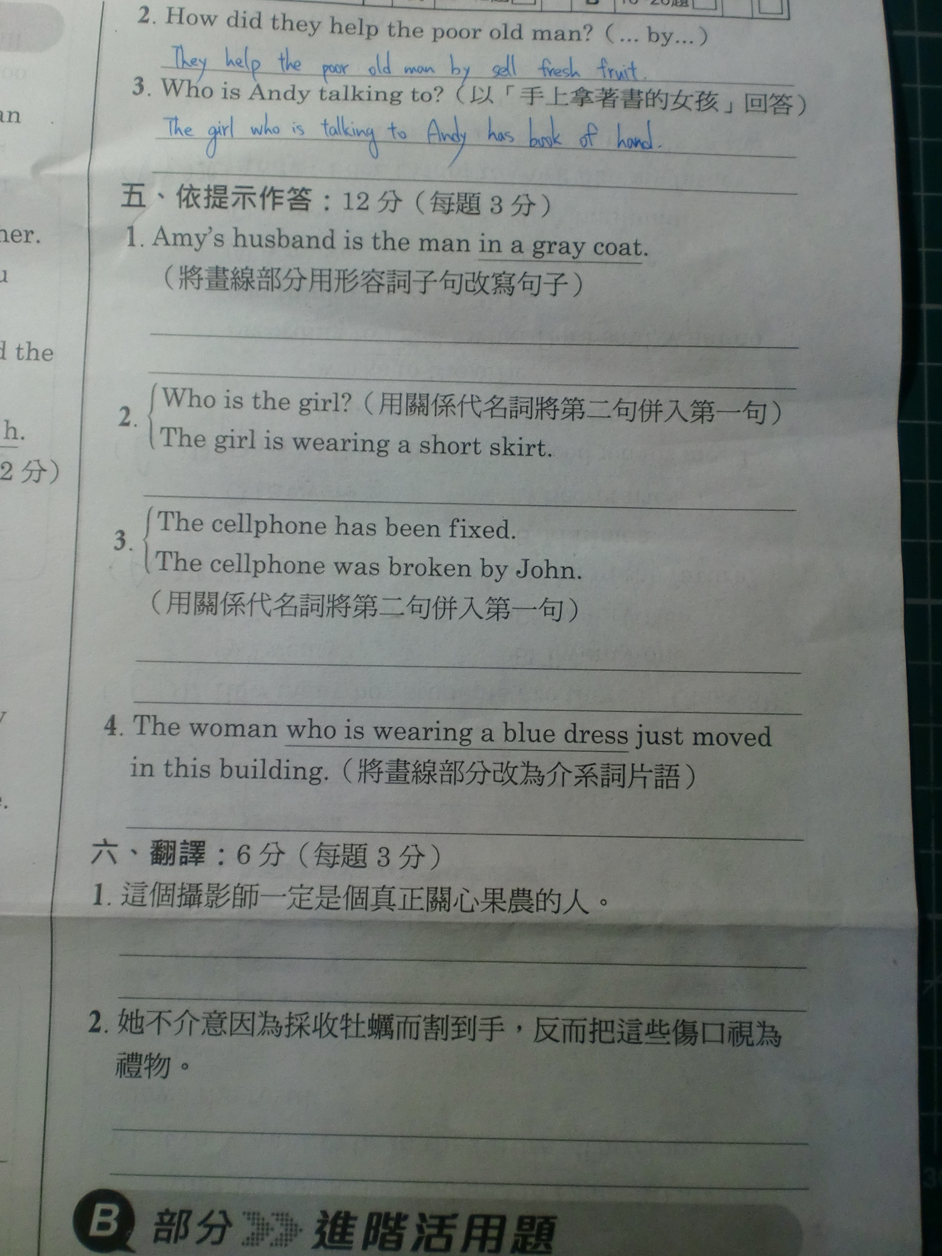 請問第5大題第1題怎麼寫?